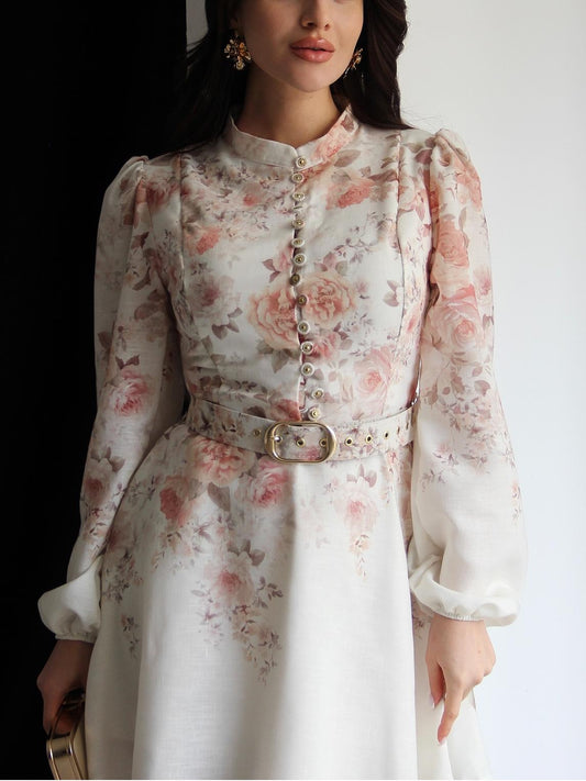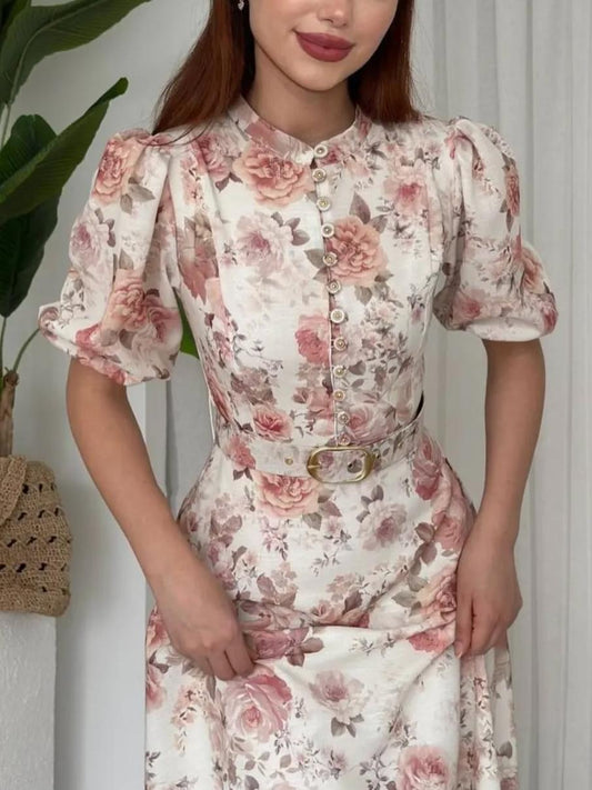 Sold outRose Patterned Belted Midi Dress