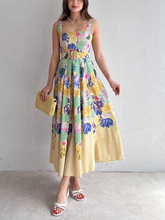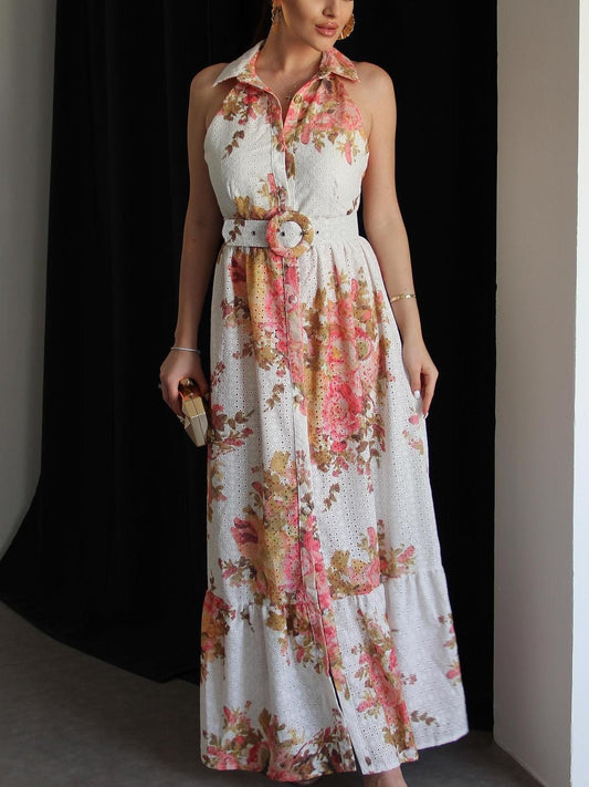 Sold outFloral Print No Sleeve Maxi Dress