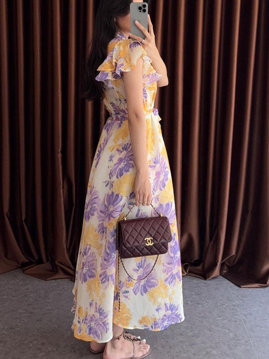 Sold outRuffled Lilac Floral Premium Dress