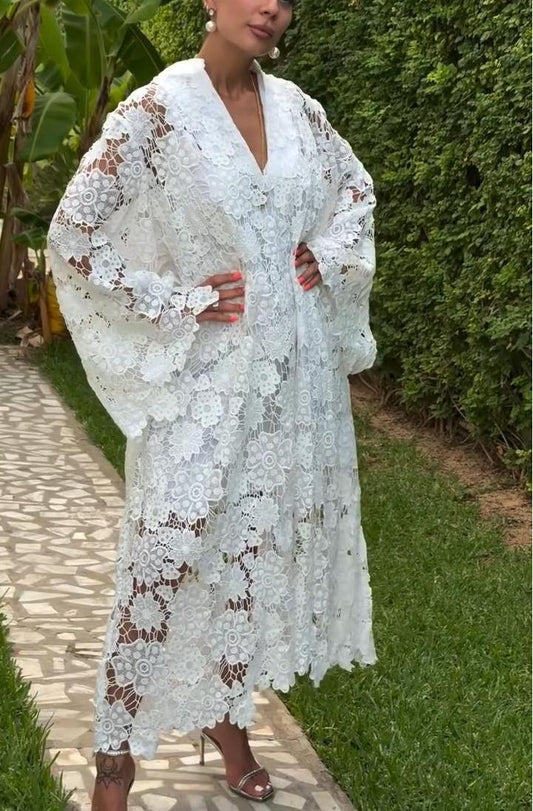 Sold outFloral Cut-out Lace Caftan