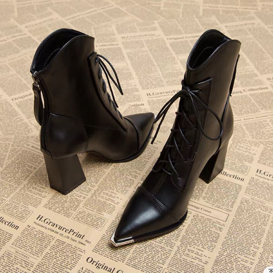 (⏰Last Day Promotion $7 OFF) Pointed Toe Chunky Heel Ankle Boots Fashion Boots