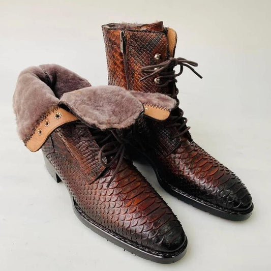 Luxury Boots Handcrafted With Python Leather And Fur Lining