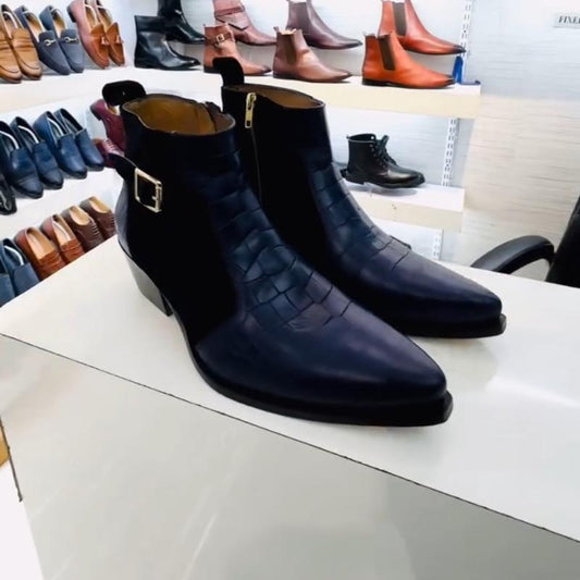 Men's Crocodile Print Faux Leather Western Cowboy Boots