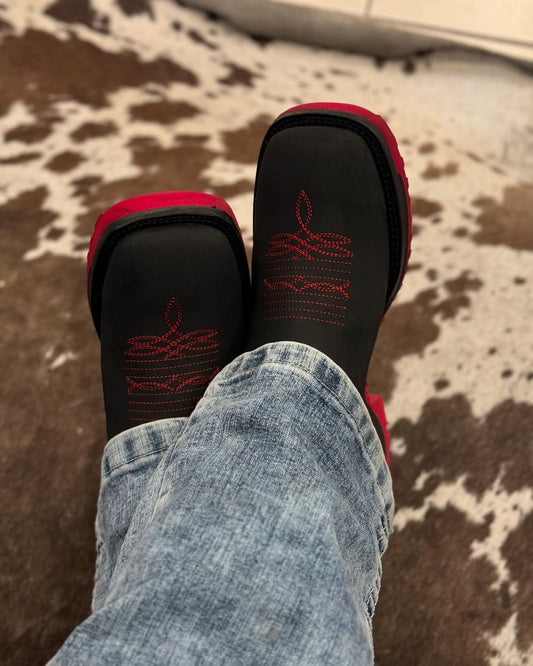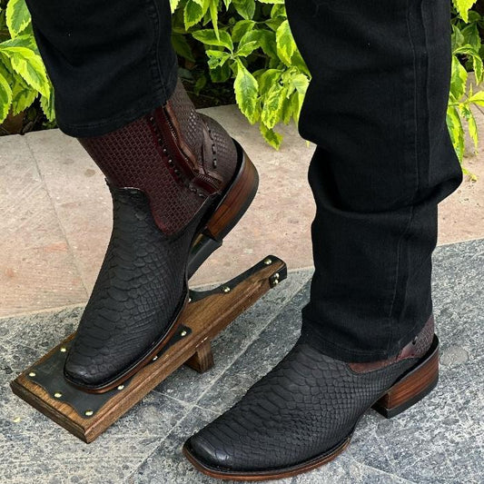 TOTAL BLACK Anaconda Leather Boots - Square Toe