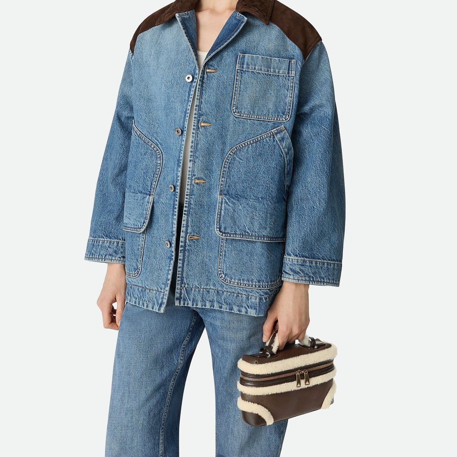 Aviator merino shearling vanity case with detachable strap